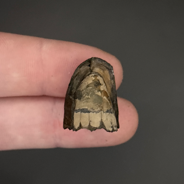 Alligator tooth found in the Santafe River in Florida, USA. This fossil is between 2.5 million-10,000 years old (Pleistocene). The fossil measures 1.7cm in length, 1.5cm in width and 1.7cm in height. Has had no repairs and no restoration.