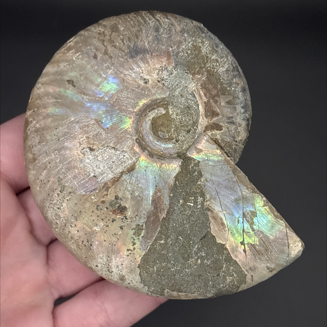 Cleoniceras ammonite found in Madagascar. Between 113-100 million years old (Cretaceous). The fossil measures 8.6cm in diameter. Had had no repairs or restoration.