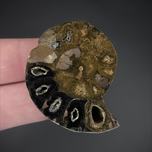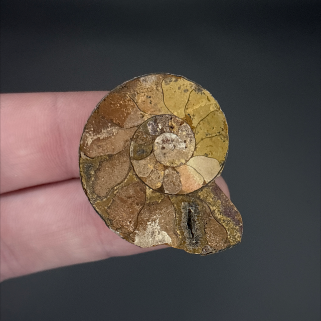 Cleoniceras ammonites (cut & polished) found in Madagascar. Between 113-100 million years old (Cretaceous). You will receive one ammonite per purchase if similar quality to the ones in the photos. Sizes range from 3cm-3.5cm in diameter.