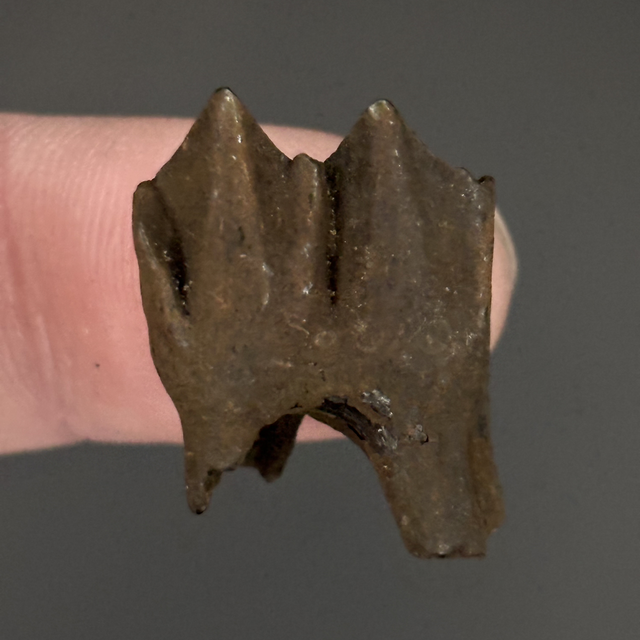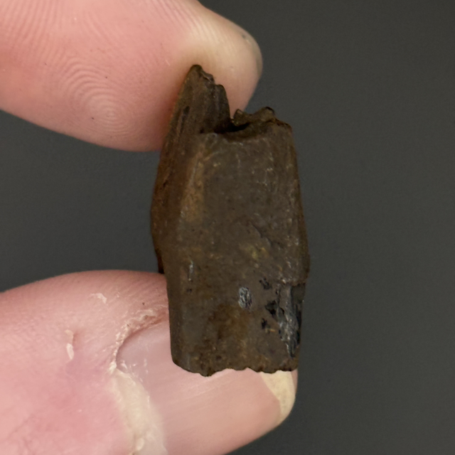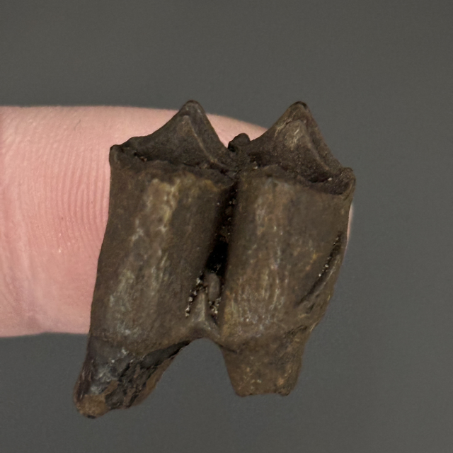 A prehistoric deer tooth found in the Santafe river in Florida, USA. This fossil is between 2.6 million-11,700 years old (Pleistocene). The tooth measures 1.4cm in length 1.5cm in width and 9m in height. Has had no repairs or restoration.