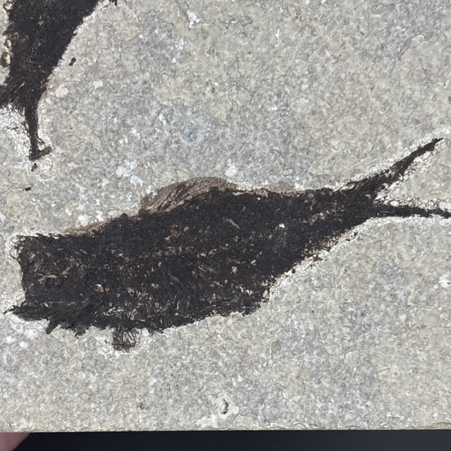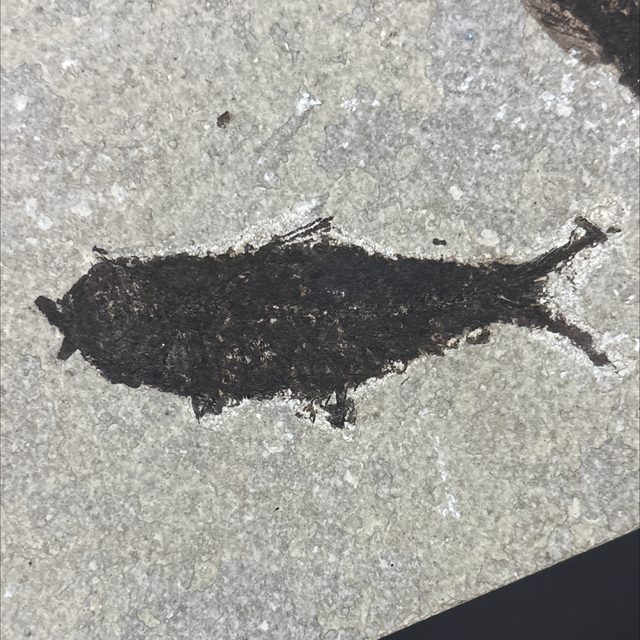 Diplomystus fish found in the Green river formation in Wyoming, USA. Around 55 million years old (Eocene). The largest fish measures 9cm in length and 3cm in width and the smaller fish measures 7.5cm in length and 2.5cm in width. Has had no repairs and no restoration.