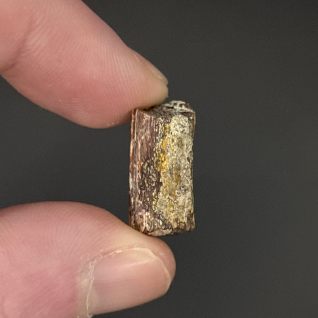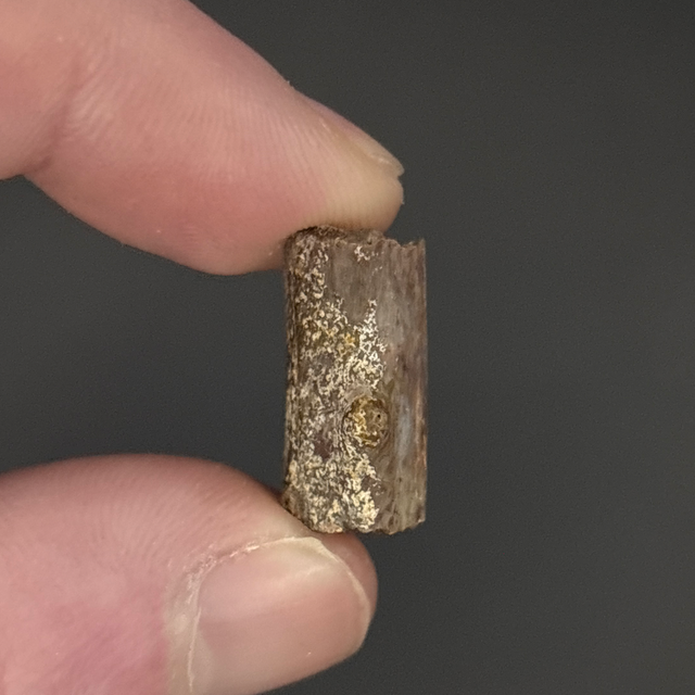 Edaphosaurus bone fragment found in the Ryan Formation, Oklahoma, USA. This fossil around 295 is million years old (Permian). The fossil measures 1.9cm in length, 1.2cm in width and 9mm in height. Has had no repairs and no restoration.