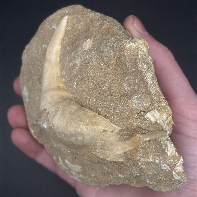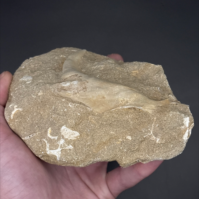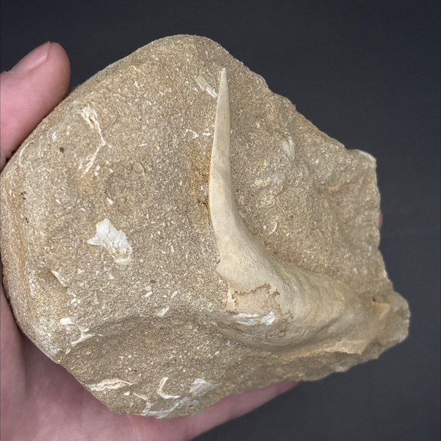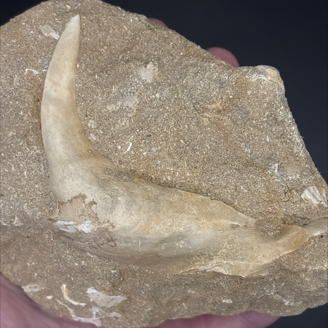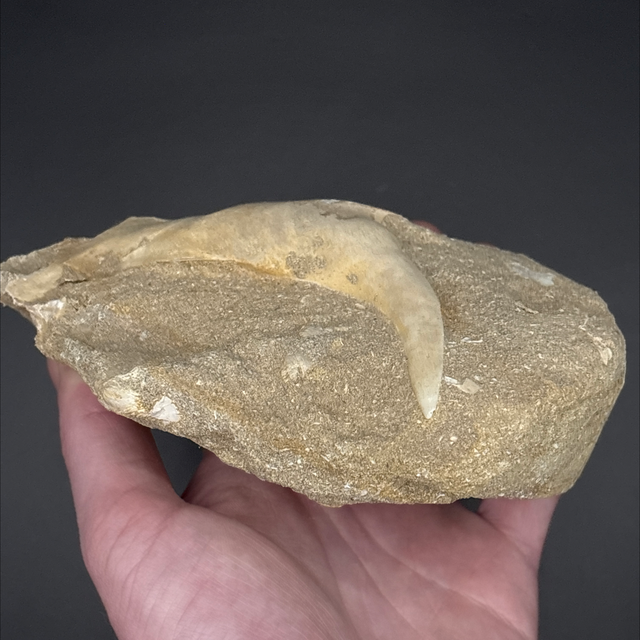 Enchodus fish jaw section found in Morocco. Around 70 million years old (Cretaceous). The fossil measures 8.8cm in length and 1.2cm in width and 6.7cm in height. Has had no repairs and no restoration.