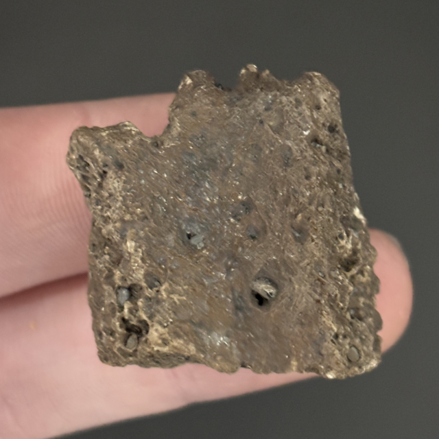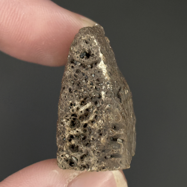 A dermal scute fragment from a giant relative of the Armadillo the size of a small car called Glyptotherium. This fossil was found in Florida, USA and is between 1.8 million-10,000 years old (Pleistocene). The fossil measures 3cm in length 2.5cm in width and 1.4cm in height. Has had no repairs or restoration.