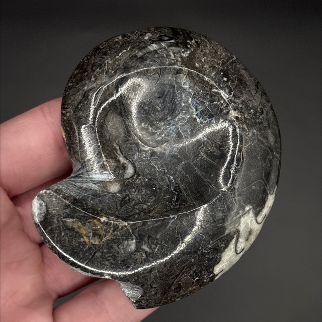Goniatite found in the Atlas Mountains in Morocco. Around 380 million years old (Devonian). The fossil measures 7.4