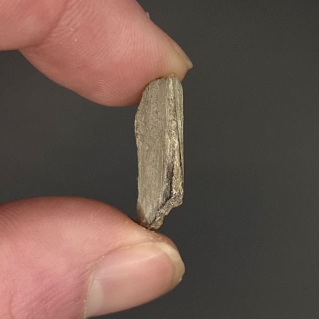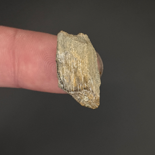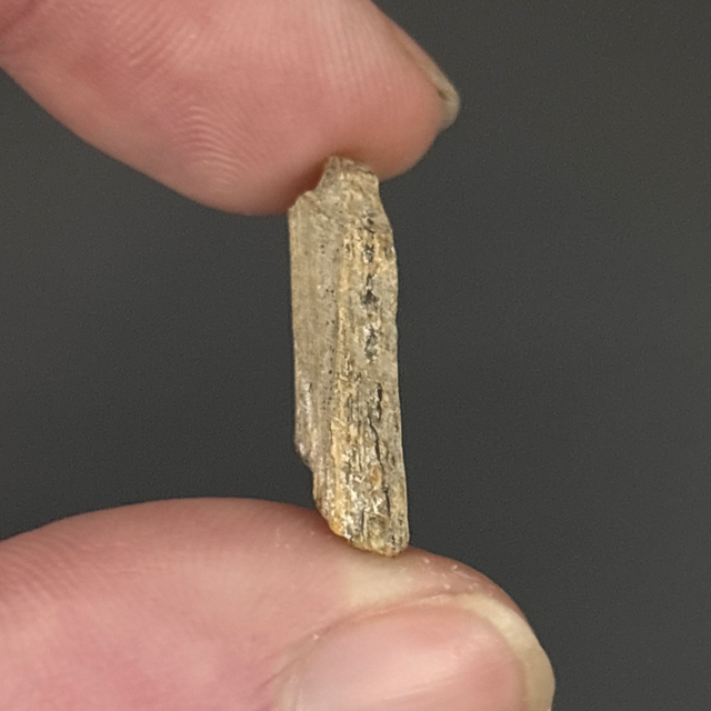 Ichthyosaur bone fragment found in Peterborough, UK. This fossil is around 160 million years old (Jurassic). The fossil measures 2.2cm in length, 1.1cm in width and 6mm in height. Has had no repairs and no restoration.