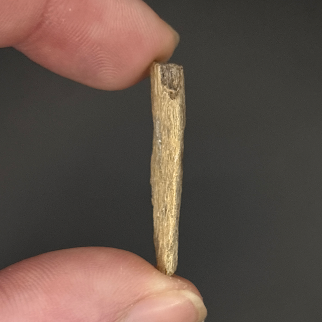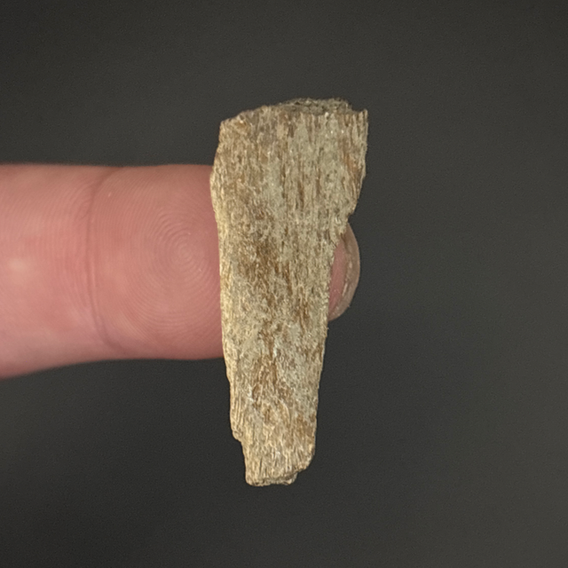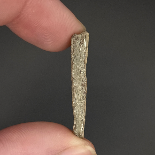 Ichthyosaur bone fragment found in Peterborough, UK. This fossil is around 160 million years old (Jurassic). The fossil measures 3.1cm in length, 1.2cm in width and 5mm in height. Has had no repairs and no restoration.