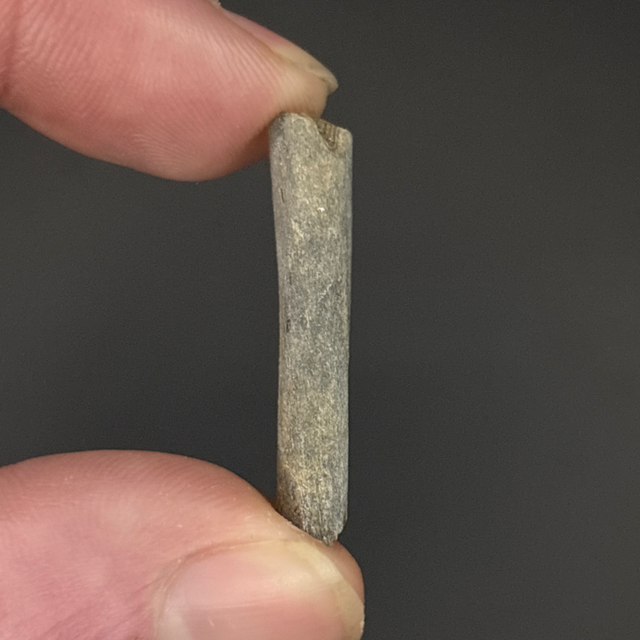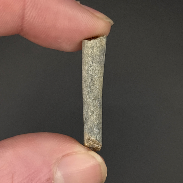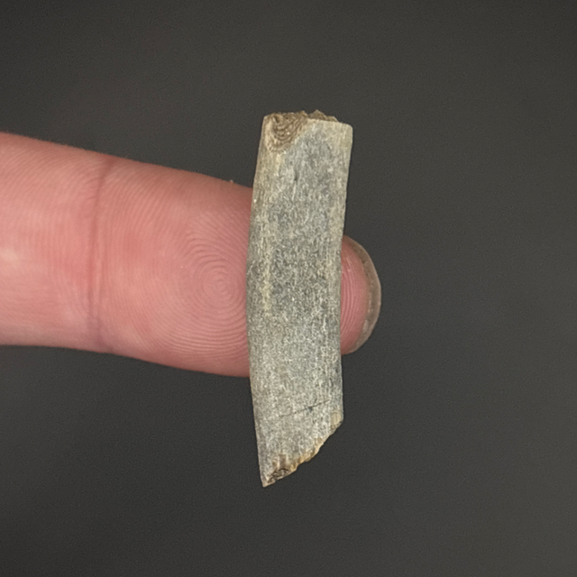 Ichthyosaur rib fragment found in Peterborough, UK. This fossil is around 160 million years old (Jurassic). The fossil measures 3cm in length, 6mm in width and 6mm in height. Has had no repairs and no restoration.