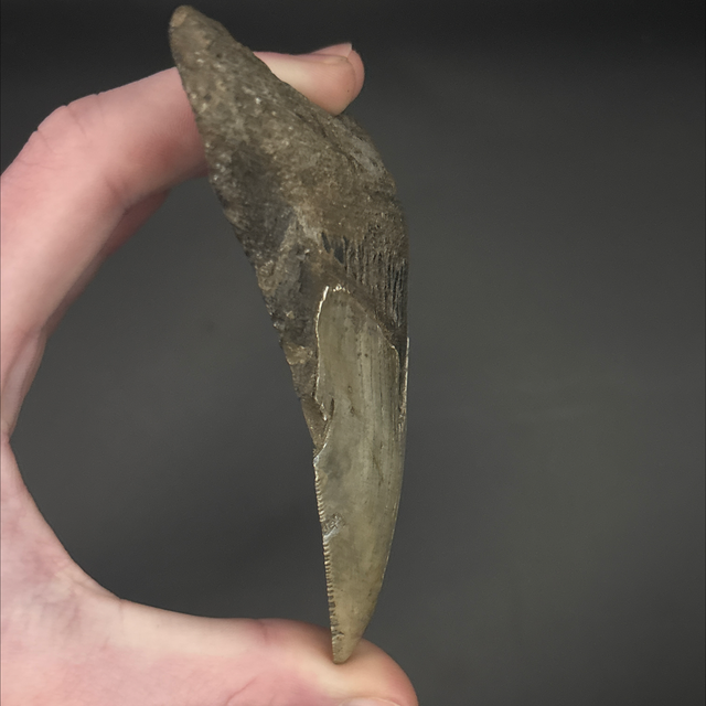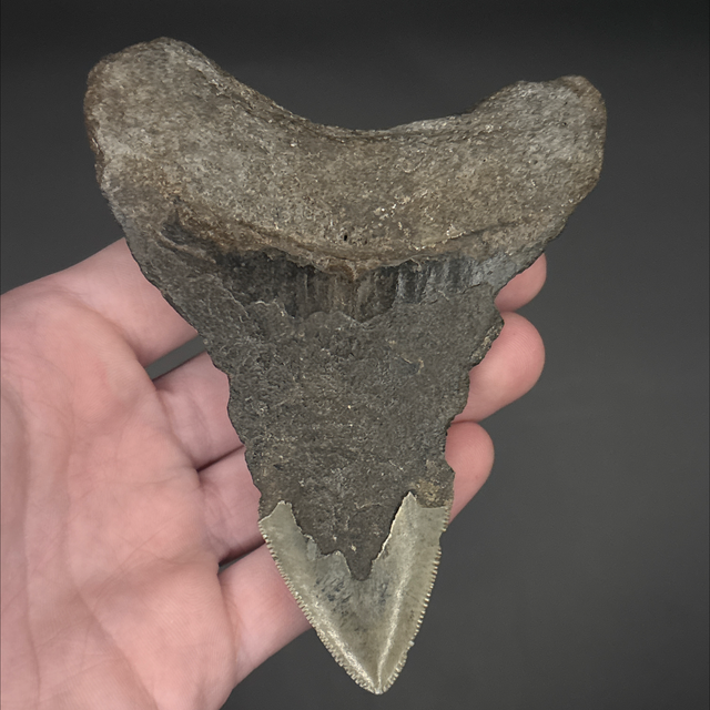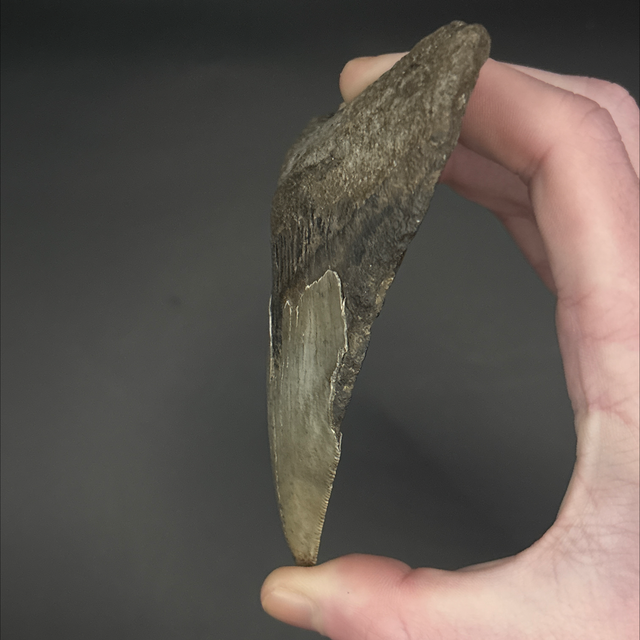 Megalodon tooth found in Florida, USA this fossil is between 12-9 million years old (Miocene). The tooth measures 9.8cm in length, 8cm in width and 2.2cm in height. Has had no repairs and no restoration.