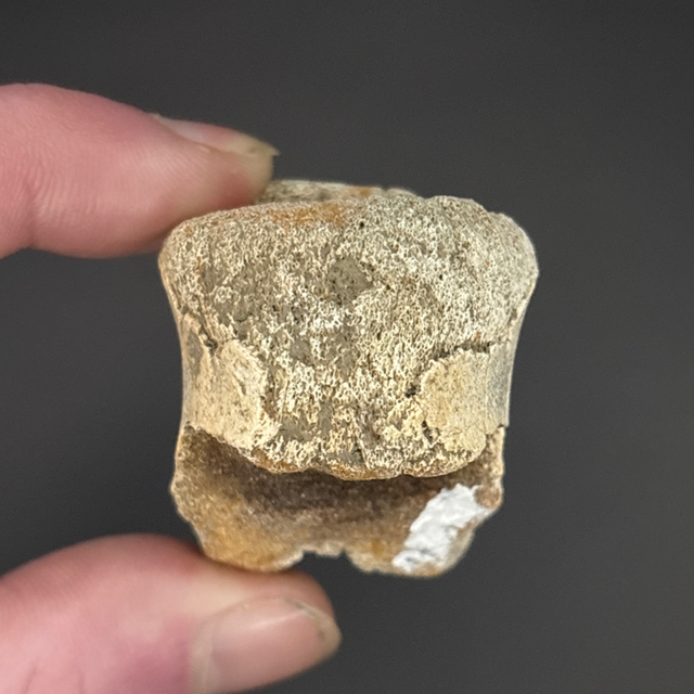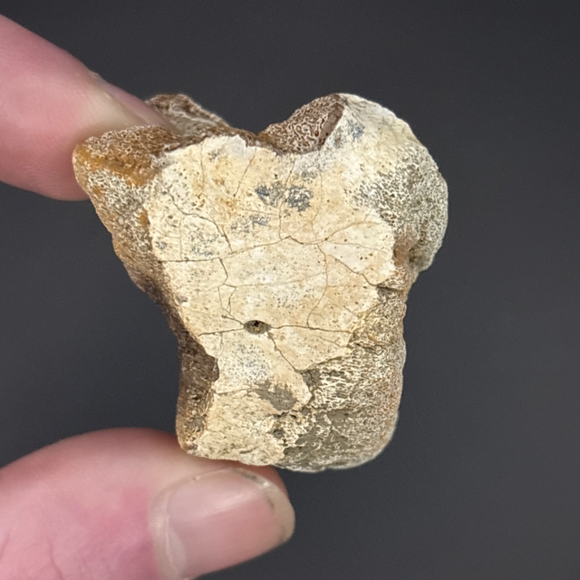 Pachycephalosaurus vertebra found in the Hell Creek Formation in Montana, USA. This fossil is between 68-66 million years old (Cretaceous). The fossil measures 3.6cm in length, 3.1cm in width and 3.6cm in height. Has had no repairs and no restoration.
