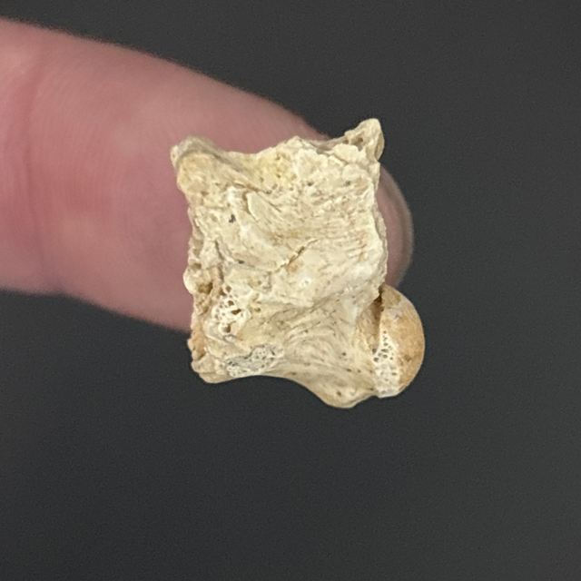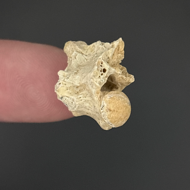 Palaeophis snake vertebra found in Morocco. Between 56-34 million years old (Eocene). The fossil measures 1.5cm in length, 1.3cm in width and 1.6cm in height. Has had no repairs or restoration.