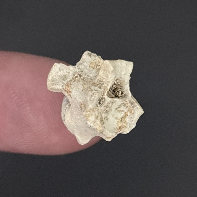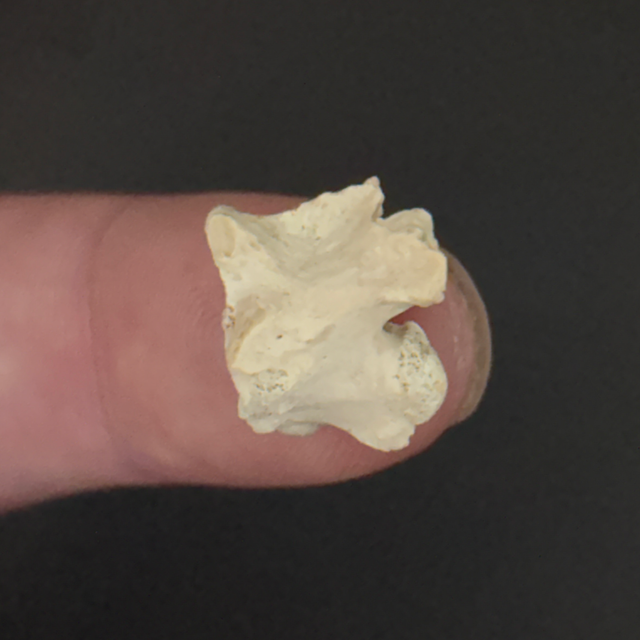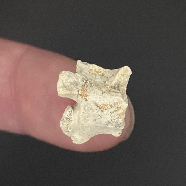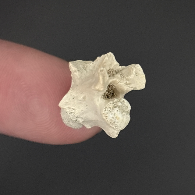 Palaeophis snake vertebra found in Morocco. Between 56-34 million years old (Eocene). The fossil measures 1.3cm in length, 1cm in width and 1.3cm in height. Has had no repairs or restoration.