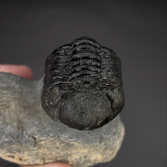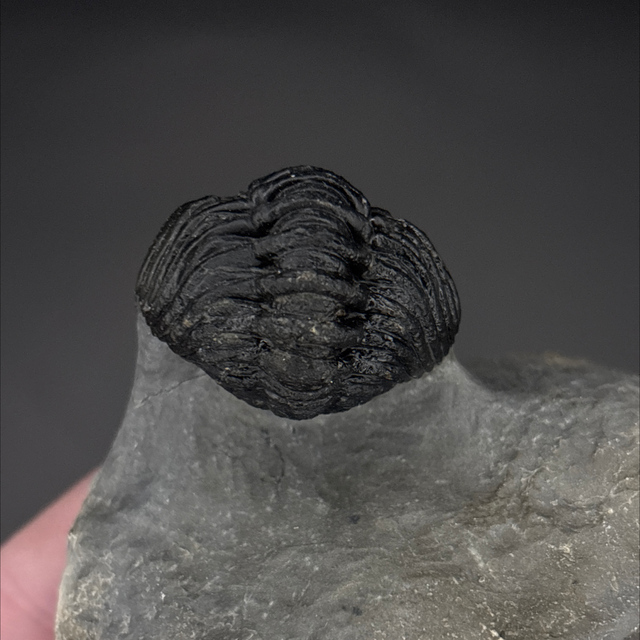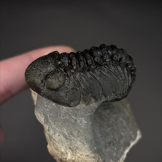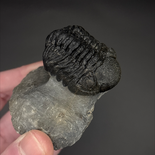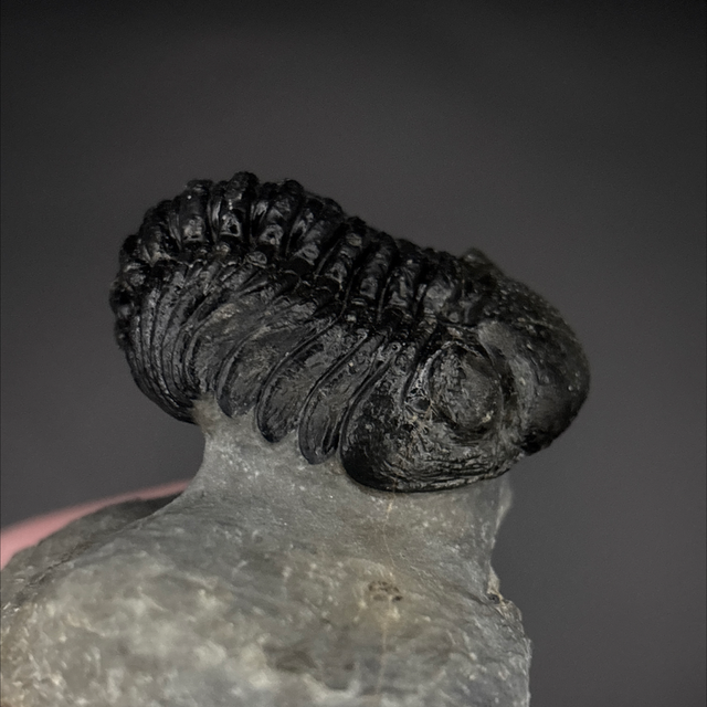 Phacops trilobite found in the Anti-Atlas Mountains in Morocco. Around 380 million years old (Devonian). The trilobite measures 4.2cm in length, 3cm in width and 2.2cm in height has had a couple repairs and a small amount of restoration.
