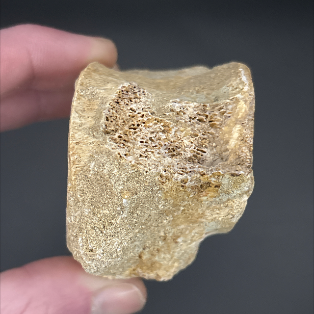 A vertebra from a long neck marine reptile called a Plesiosaur. This fossil was found in Morocco and is around 100 million years old (Cretaceous). The vertebra measures 4cm in length 6.5cm in width and 5.5cm in height. Has had no repairs and no restoration.