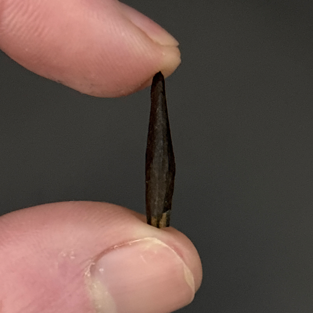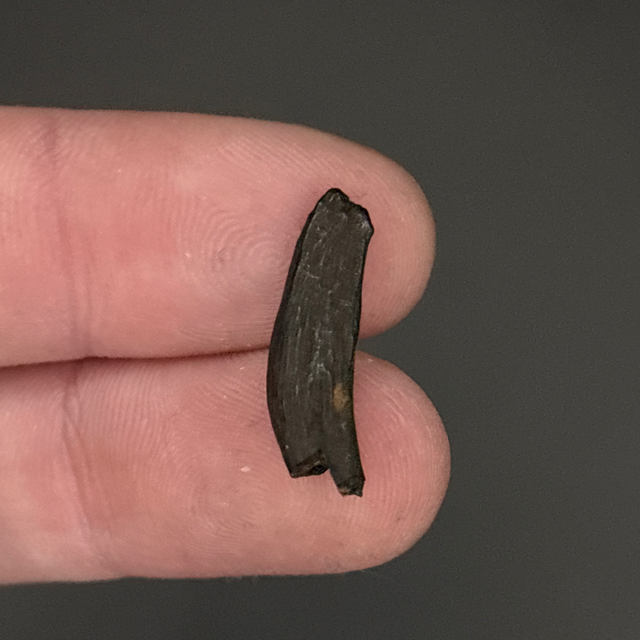 A prehistoric Raccoon tooth found in the Santafe River, Florida, USA. Between 2.6 million -11,700 years old (Pleistocene). The tooth measures 1.9cm in length, 6mm in width and 3mm in height. Has had no repairs or restoration.