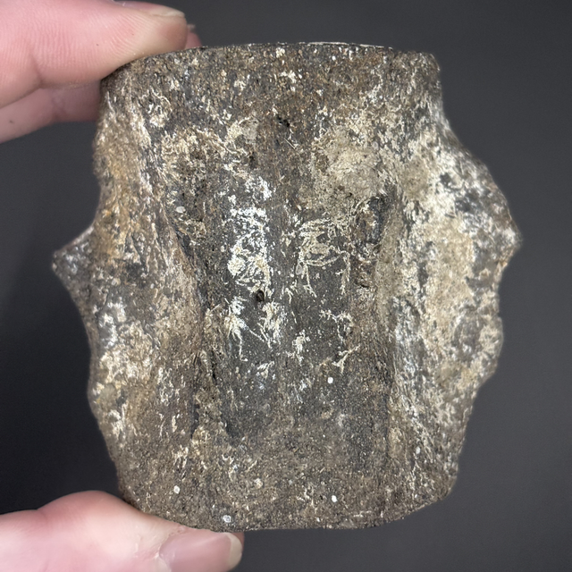 A vertebra from a prehistoric Whale that lived alongside Megalodon. This fossil was found in South Dakota, USA and is between 20-10 million years old (Miocene). The fossil measures 6.3cm in length 6.7cm in width and 4.5cm in height. Has had no repairs or restoration.