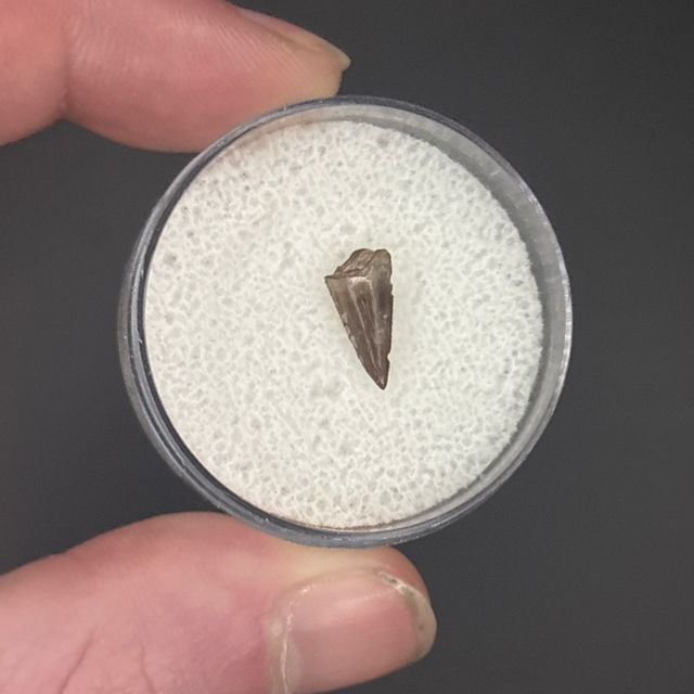 Xenacanthus shark tooth found in Oklahoma, USA. This fossil is around 270 million years old (Permian). The fossil measures 1.1cm in length, 6mm in width and 3mm in height. Has had no repairs and no restoration.